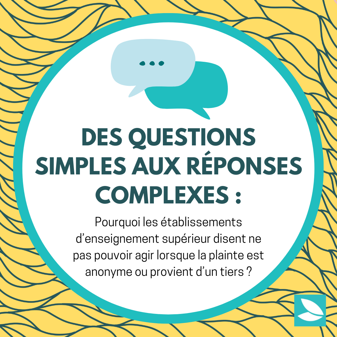 Des questions simples aux réponses complexes – Partie 3 : Pourquoi les établissements d’enseignement supérieur disent ne pas pouvoir agir lorsque la plainte est anonyme ou provient d’un tiers ?